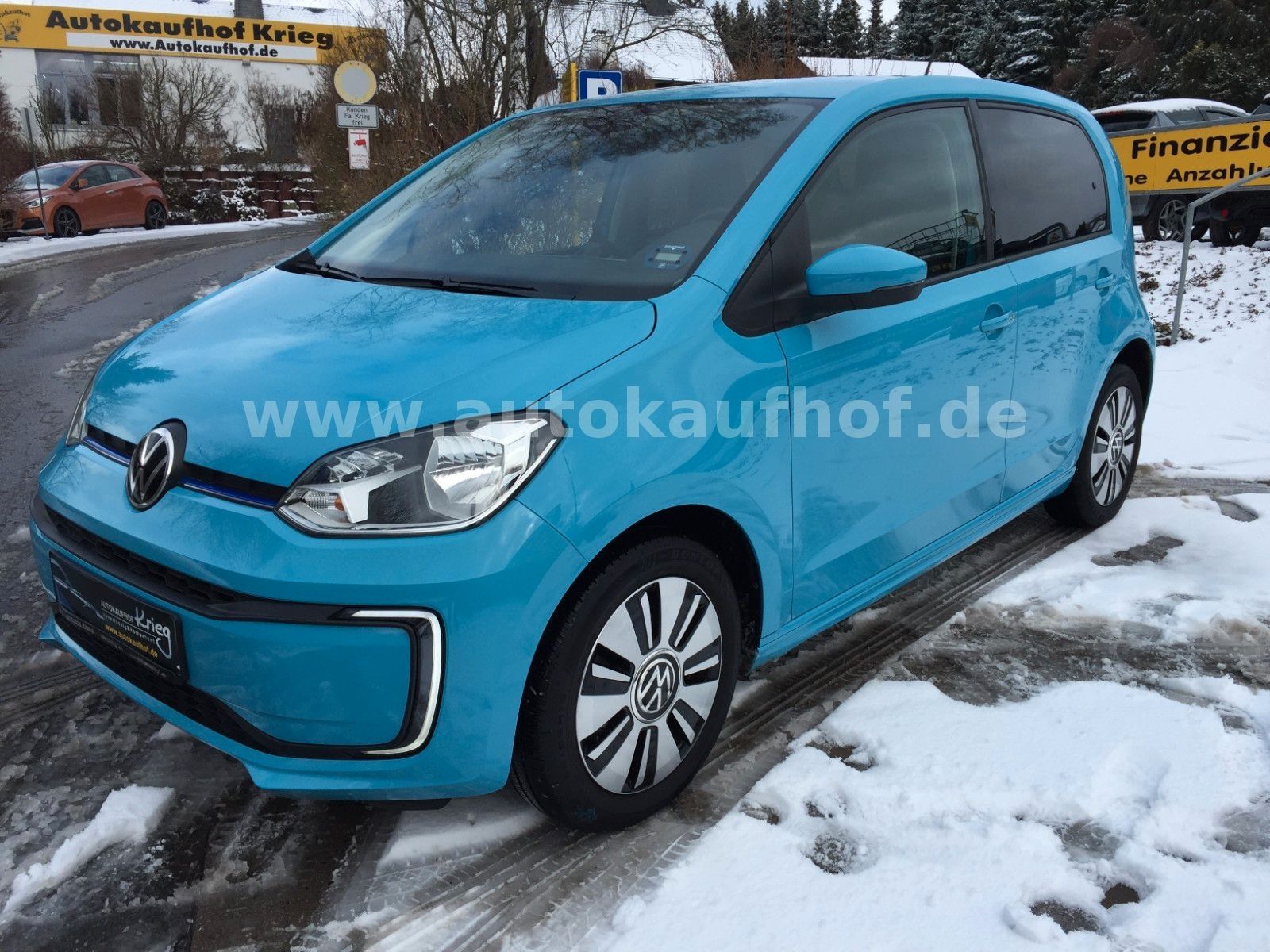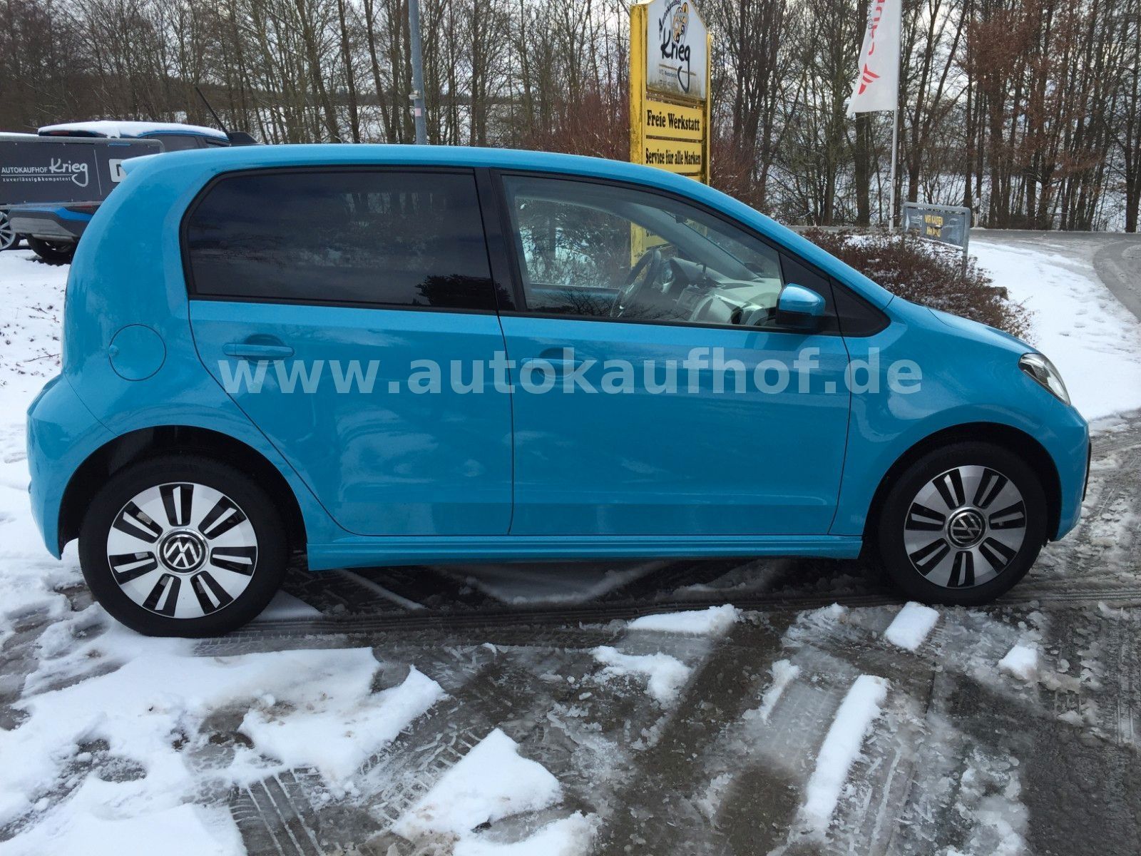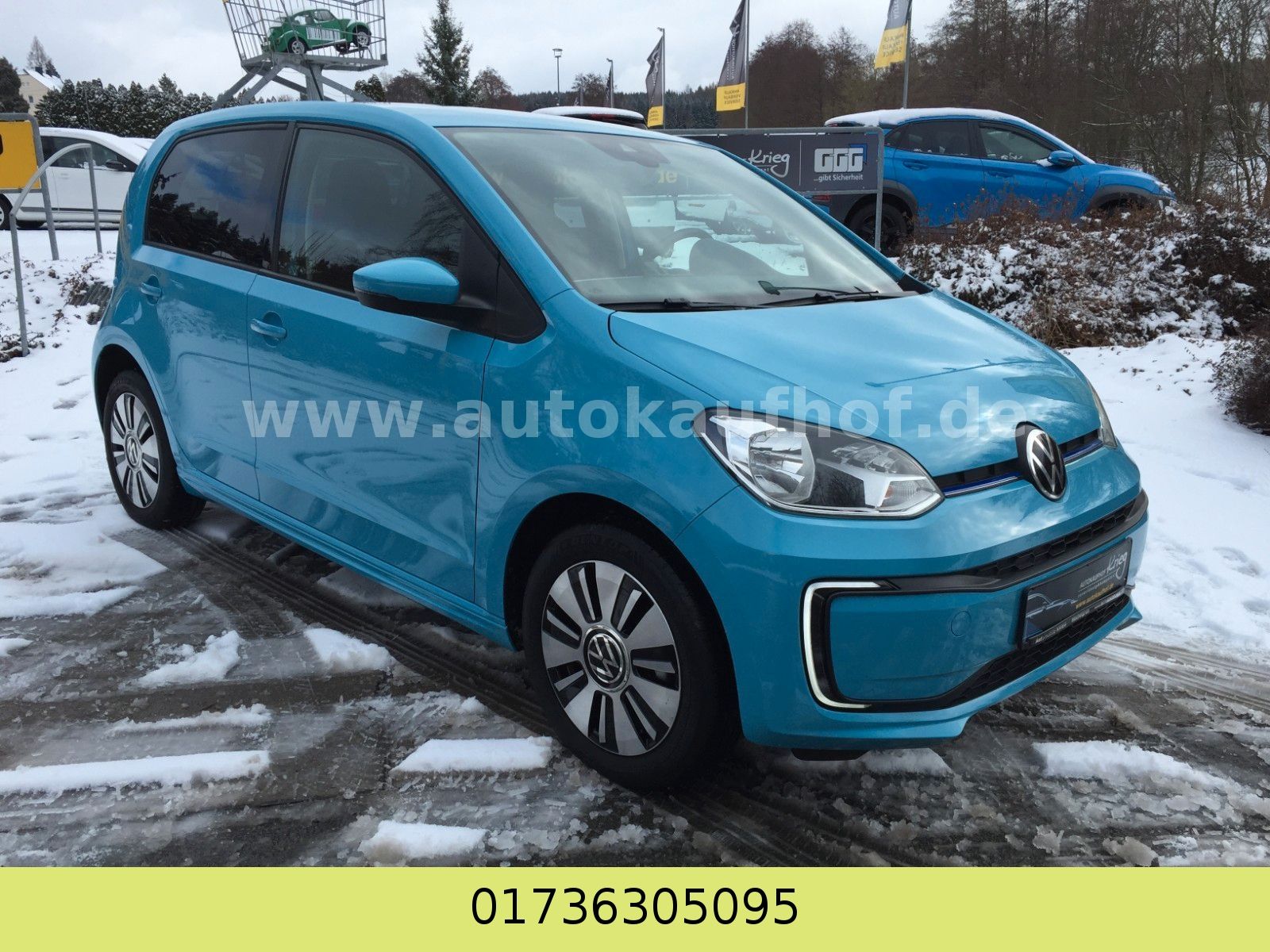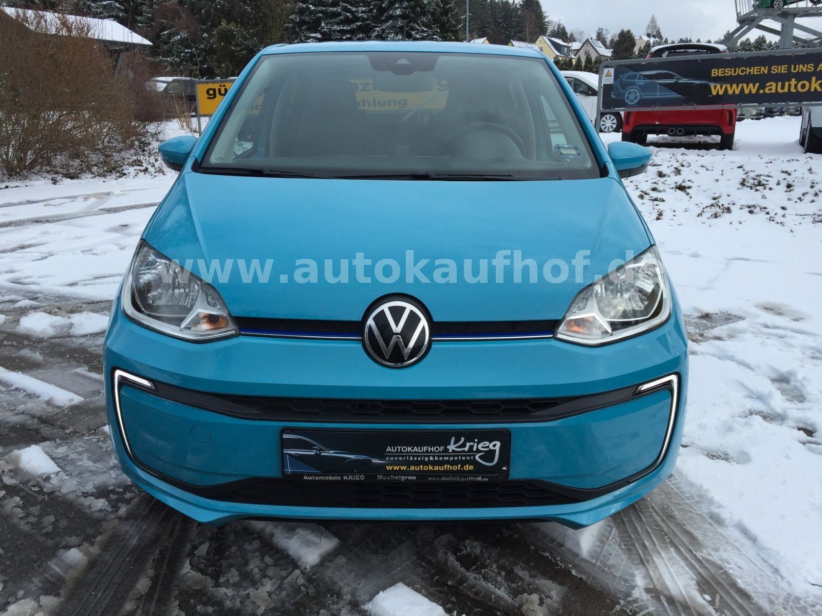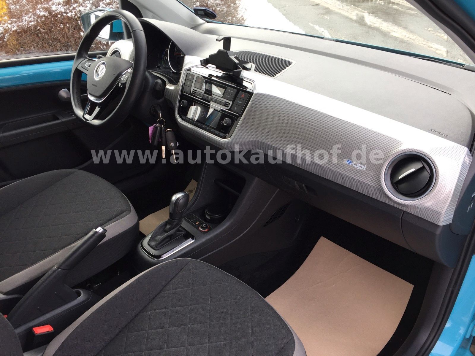 • Weitere Ausstattung: Airbag Fahrer-/Beifahrerseite, Beifahrerairbag abschaltbar, Akustischer Fußgängerschutz, Außensound (e-sound), Ambiente-Beleuchtung, Antriebs-Schlupfregelung (ASR), Audiosystem Composition Phone (Bluetooth, SD-Karten-Schnittstelle, AUX-IN), Bluetooth-Schnittstelle für Mobiltelefon, Bremsassistent, Chrom-Paket 2, Dachhimmel Stoff, grau, Einstiegsleisten (Aluminium), Elektromotor 61 kW, Frontscheibe Verbundglas getönt, Fußmatten Textil, Gepäckraumabdeckung / Rollo, Gepäckraumbeleuchtung, Gepäckraumboden höhenverstellbar, Gepäcksicherungsnetz, Getriebe für Elektrofahrzeug, Handbremshebelgriff Leder, Handschuhfach mit Klappe, Heckscheibe heizbar, Heckscheibenwischer, Innenausstattung: Dekor Shark Skin, Innenspiegel abblendbar, Isofix-Aufnahmen für Kindersitz an Rücksitz, Karosserie: 4-türig, Kennzeichenbeleuchtung LED, Klimaanlage Climatronic 1-Zonen, Kopfstützen hinten, Ladekabel mit Schukostecker, Ladekabel mit Typ 2-Stecker (Mode 3), Lautsprecher (6), Lenksäule (Lenkrad) höhenverstellbar, LM-Felgen, Mobile Online Dienste VW Connect, Modellpflege (2), Motor-Schleppmoment-Regulator (MSR), Multifunktionsanzeige / Bordcomputer, Multimedia-Schnittstelle USB, Nebelschlussleuchte, Radioempfang digital (DAB+), Reifen-Reparaturkit (Tire Mobility Set), Reifenkontroll-Anzeige, Rücksitzlehne geteilt, Schalt-/Wählhebelgriff Leder, Scheinwerfer Halogen H4, Schnellladevorrichtung (CCS-Ladedose), Schwellerverbreiterung Wagenfarbe, Seitenairbag vorn mit Kopf-Airbag-Einheit, Sitzbezug / Polsterung: Stoff Cross, Smartphone Halterung maps+more Dockingstation, Sonnenblende rechts mit Spiegel, Stabilisator vorn, Stoßfänger lackiert, Style Plus, Türgriffe außen Wagenfarbe, Verbandkasten und Warndreieck, Verglasung hinten abgedunkelt (65 %), Warnanlage für Sicherheitsgurte vorn und hinten, Zierleiste blau Heckklappe/-Deckel unten